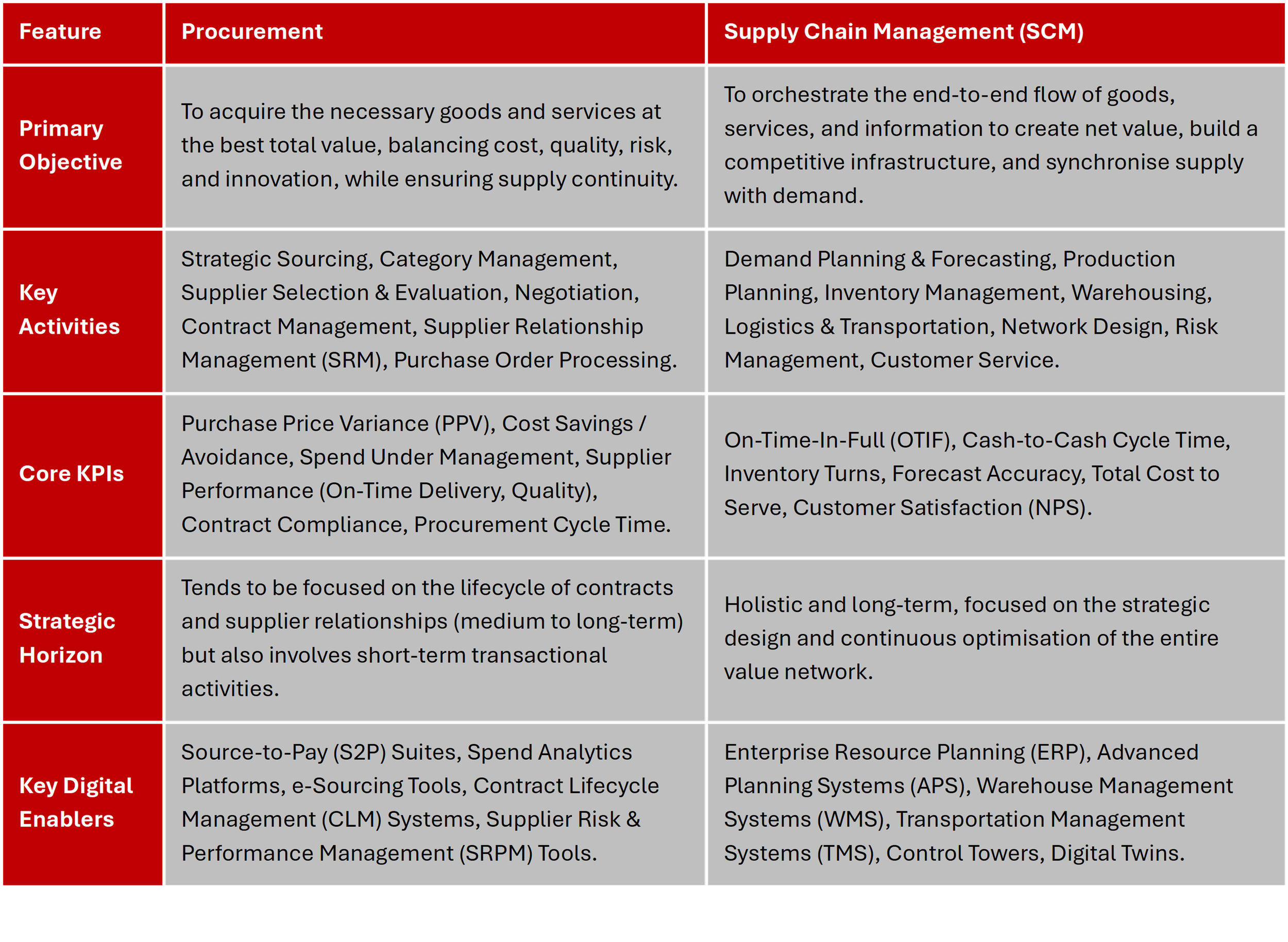 Table 1: Procurement vs. Supply Chain Management - A Modern Comparative Analysis